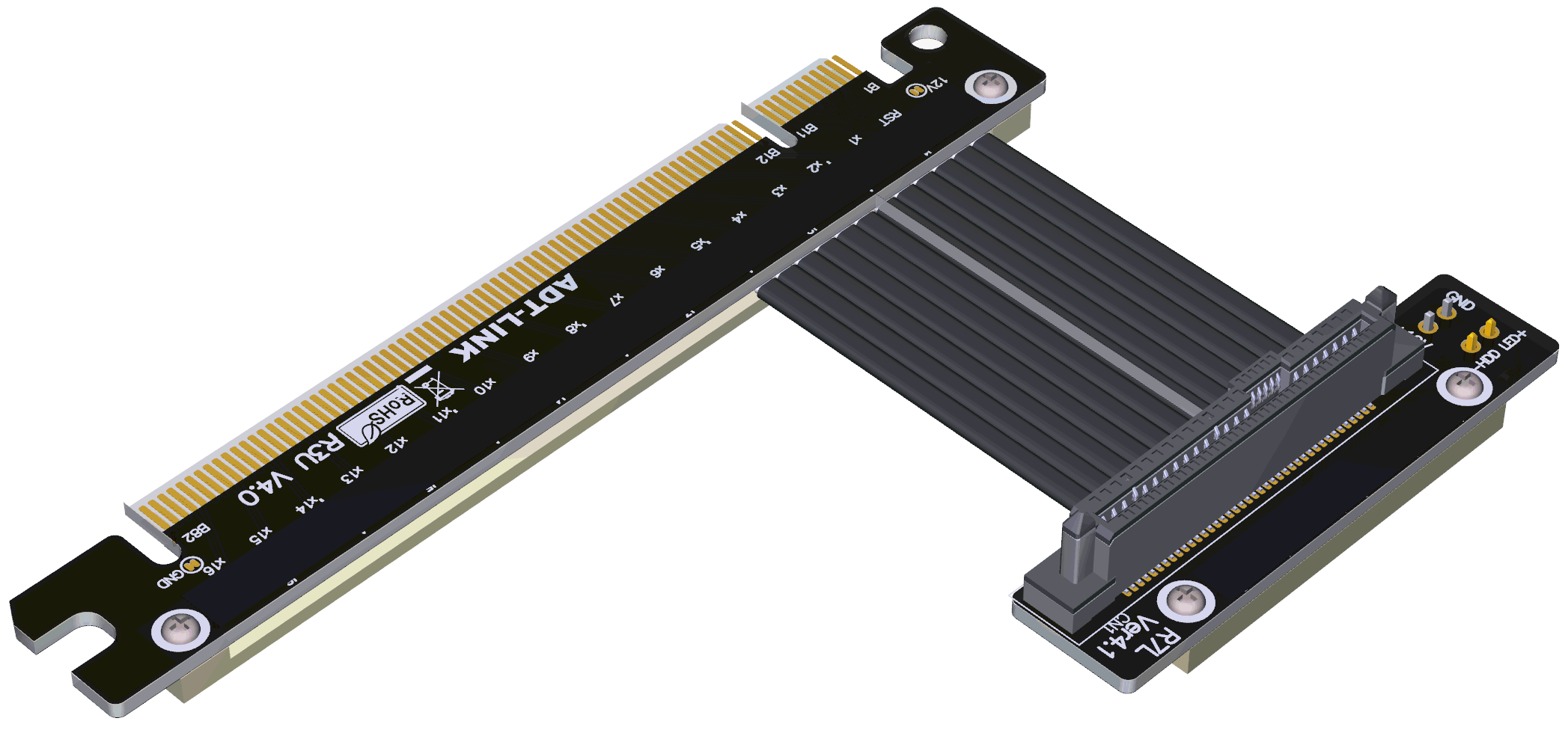 Número de piezaDescripciónAncho de bandaR37UF 4,0Extensión de cable PCIe x16 a U.2 Conector de 90 gradosPCIe 4,0x4 (64G/BPS)R37UL-TU 4,0Cable PCIe x16 a U.2, extensión de giro hacia abajo, Conector de 180 gradosPCIe 4,0x4 (64G/BPS)R37UF 4,0Extensión de cable PCIe x16 a U.2 Conector de 180 gradosPCIe 4,0x4 (64G/BPS)Descripción de la longitud del cable: