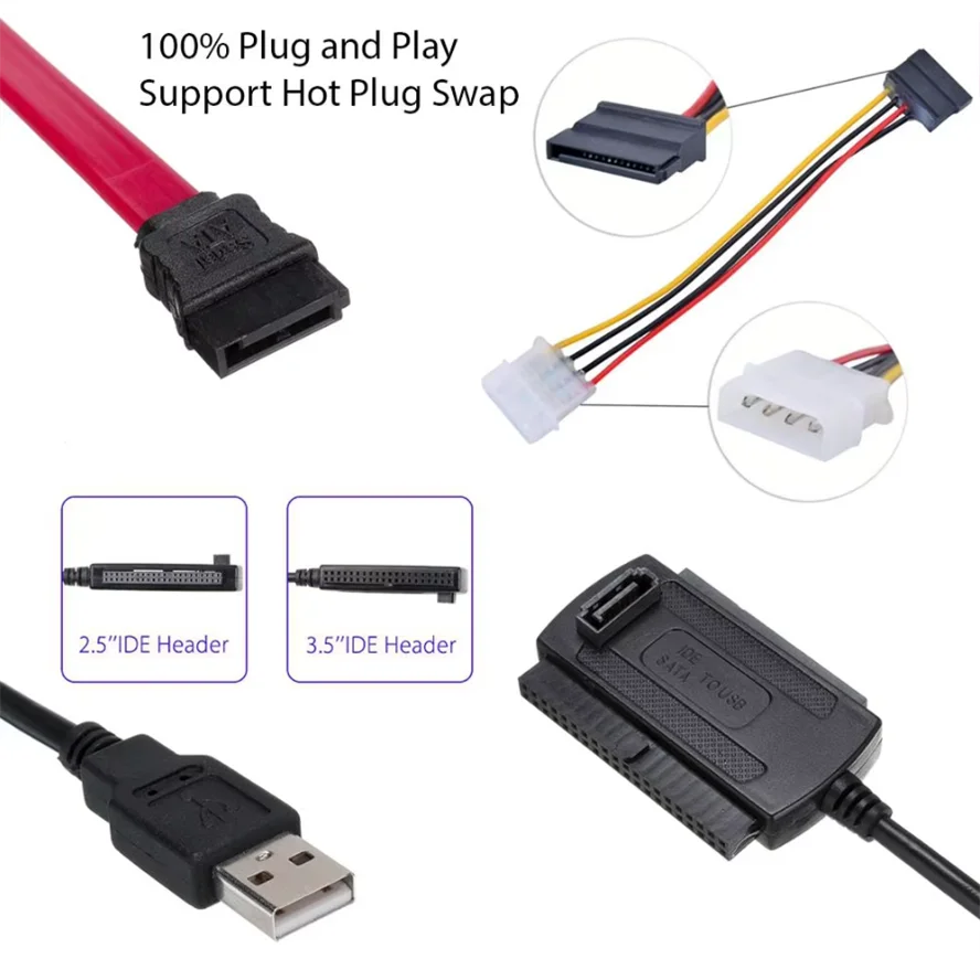 Comprar Interfaz USB para conectar a interfaz IDE y SATA de 2,5 y 3,5 pulgadas, convertidor adaptador de disco duro HDD USB 2,0 a IDE SATA S-ATA