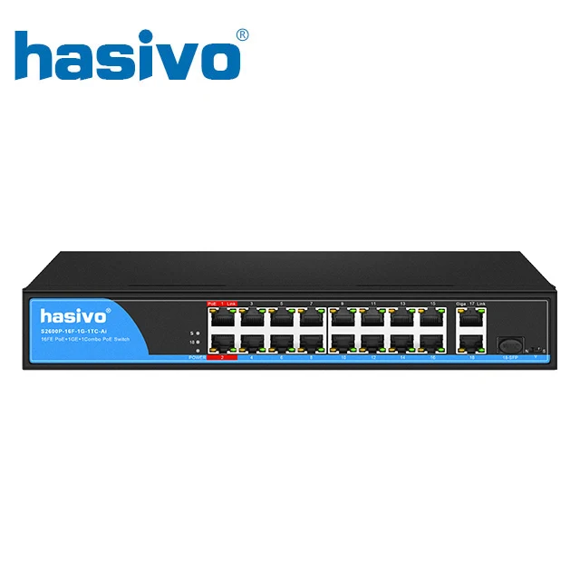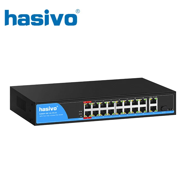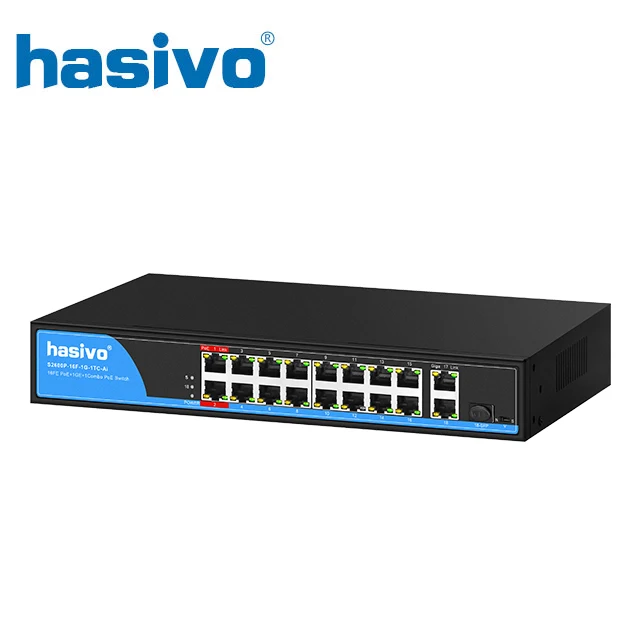 Comprar Interruptor de 16 puertos PoE para cámara IP con 1 puerto 1000M, uplink + 1 puerto 1000M RJ45 Uplink/1 puerto SFP Combo PoE 48v