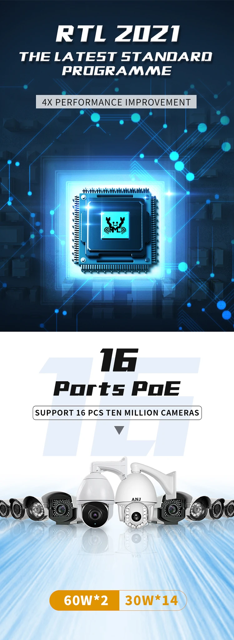 * Cumple con IEEE 802. 3AF/AT/PoE ++/HiPoE, potencia de salida PoE de todo el dispositivo hasta 150/300W (el primer puerto puede emitir HiPoE _ 60W y otra potencia PoE de un solo puerto hasta 30W).