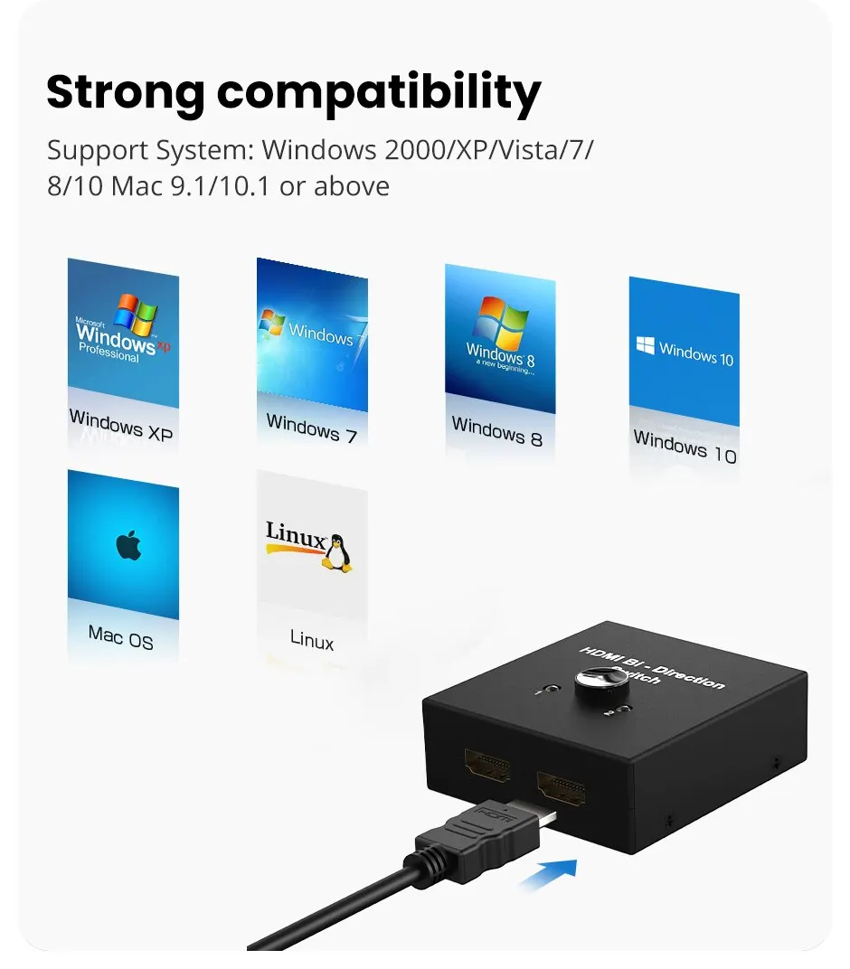 El APOYO DE 3D, 1080P, resolución de 4K x 2K y audio de alta definición, usted puede disfrutar del vídeo y del audio más magnífico con este interruptor de HDMI. (Utilice el cable HDMI 2,0 estándar cuando conecte Xbox One, PS4 Pro).