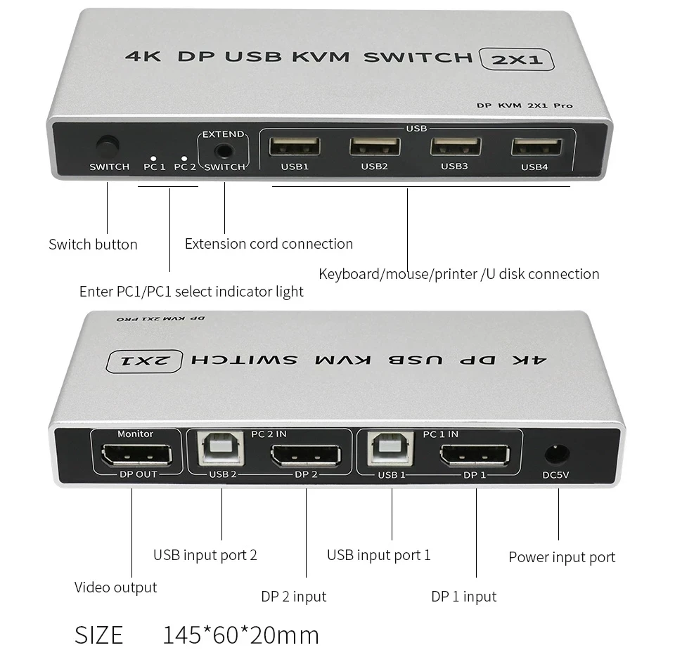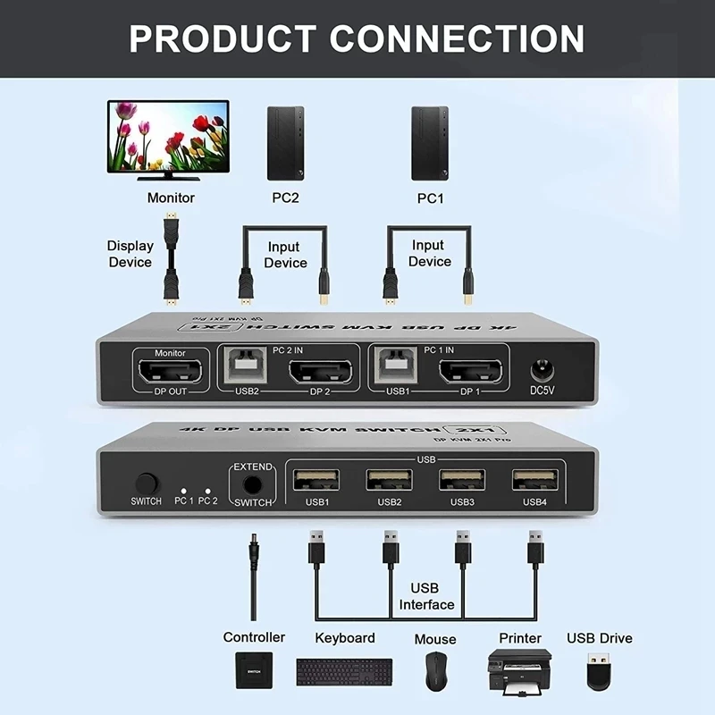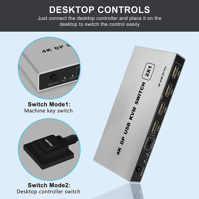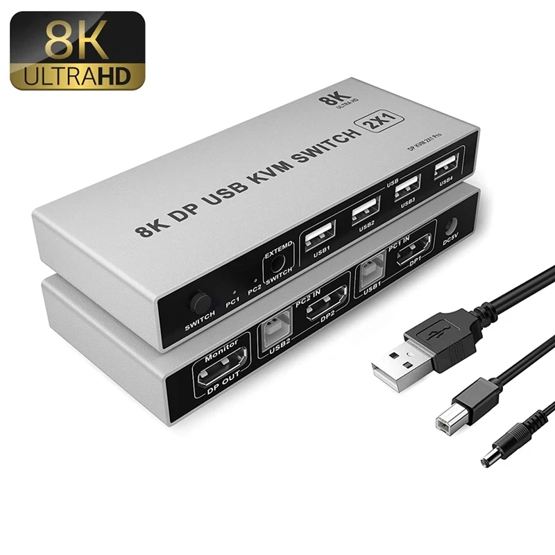 Comprar Interruptor de 8K Displayport KVM 2x1 8K 60Hz DP USB KVM Switch 2 en 1 out Displayport 1,4 Switch KVM DP USB Switch Share Keyboard Mouse