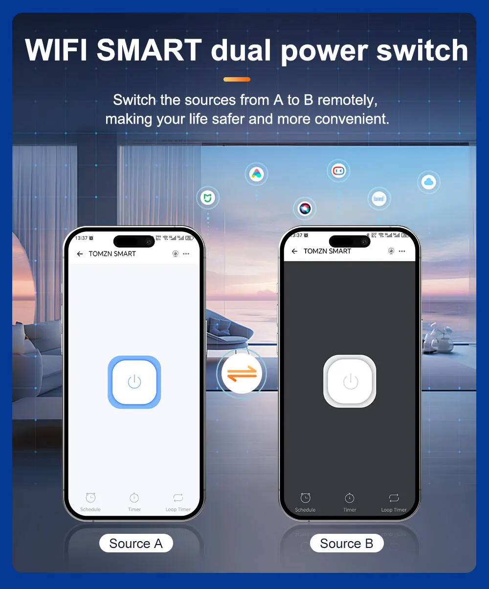 Interruptor de alimentación dual inteligente WIFI poreWeLink