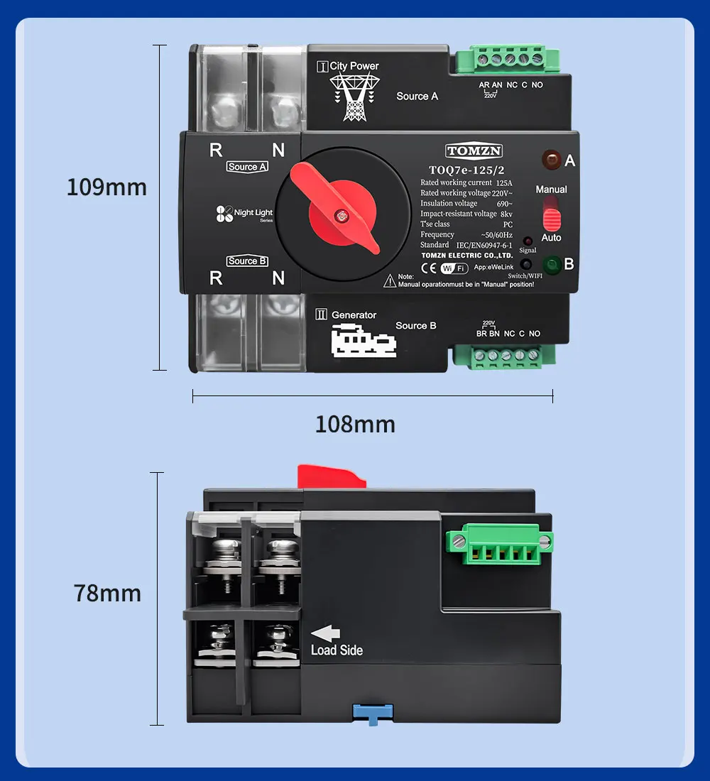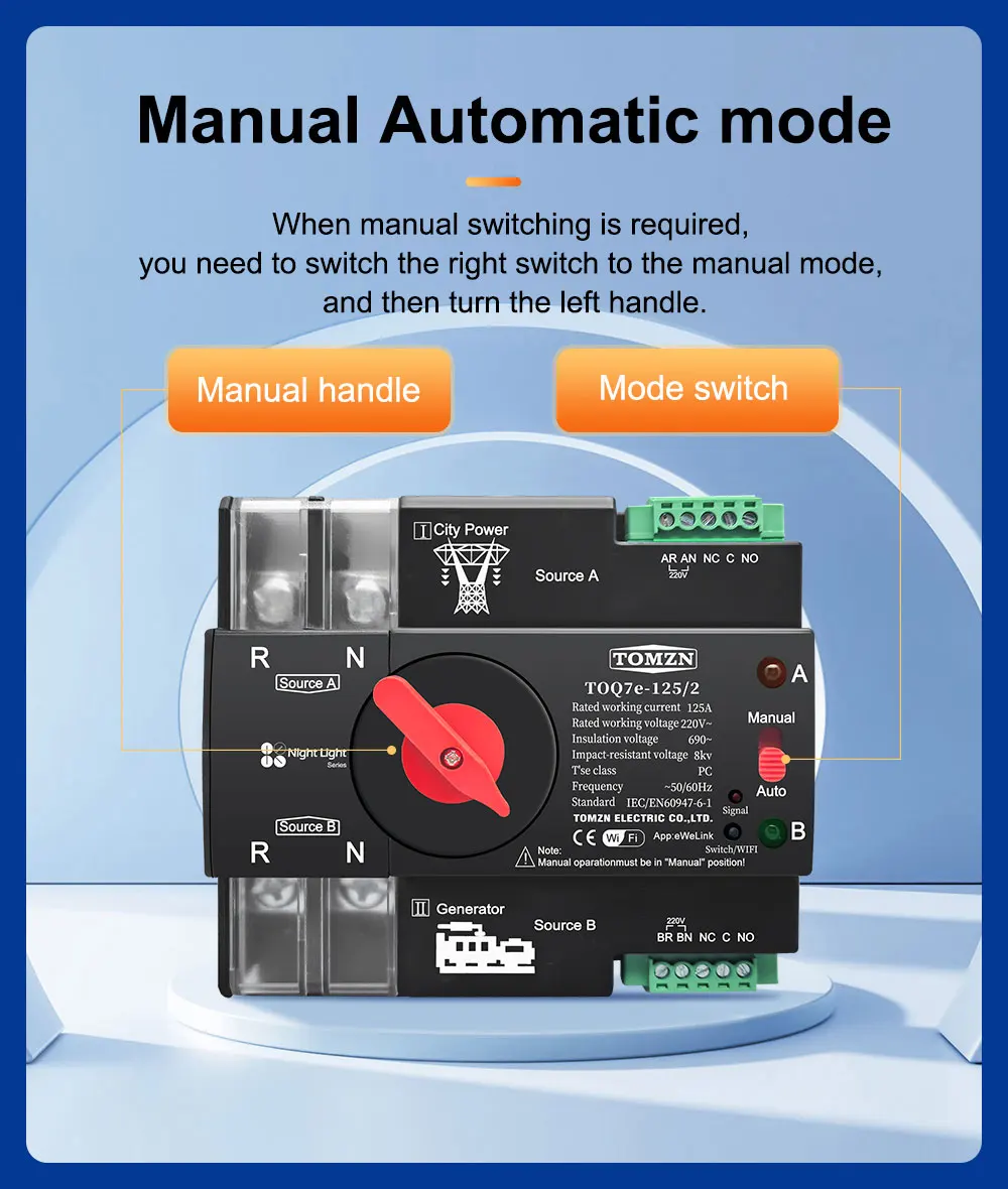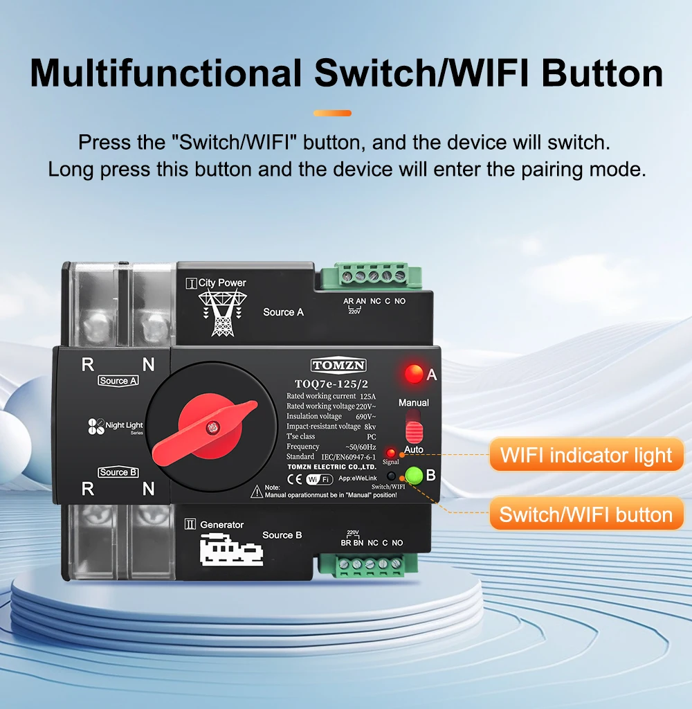2P WIFI ATS Solo para 220-230 V CA (los usuarios en países con fuente de alimentación de 110-120 V no pueden usarlo)