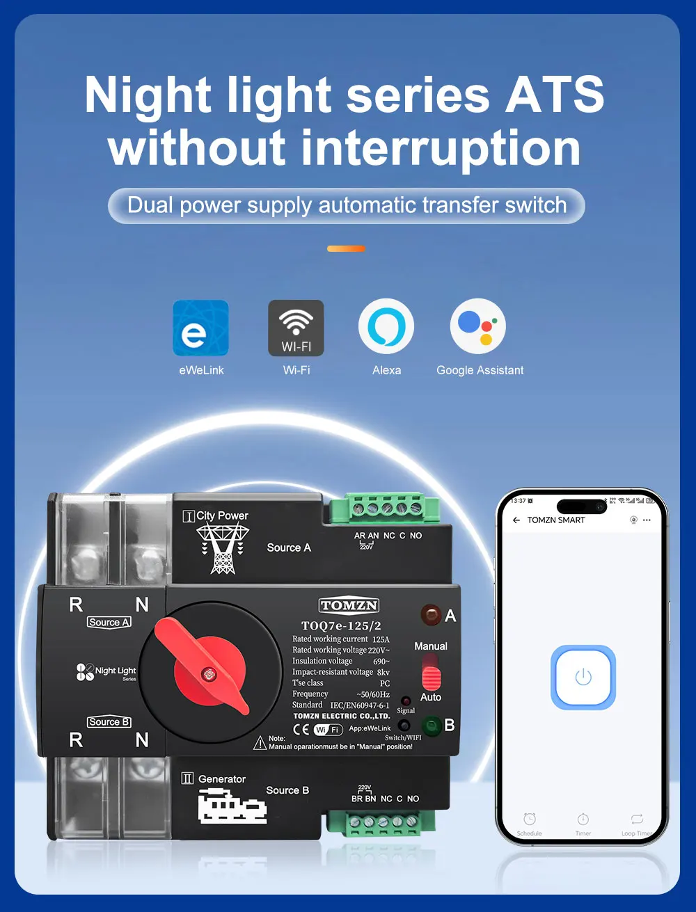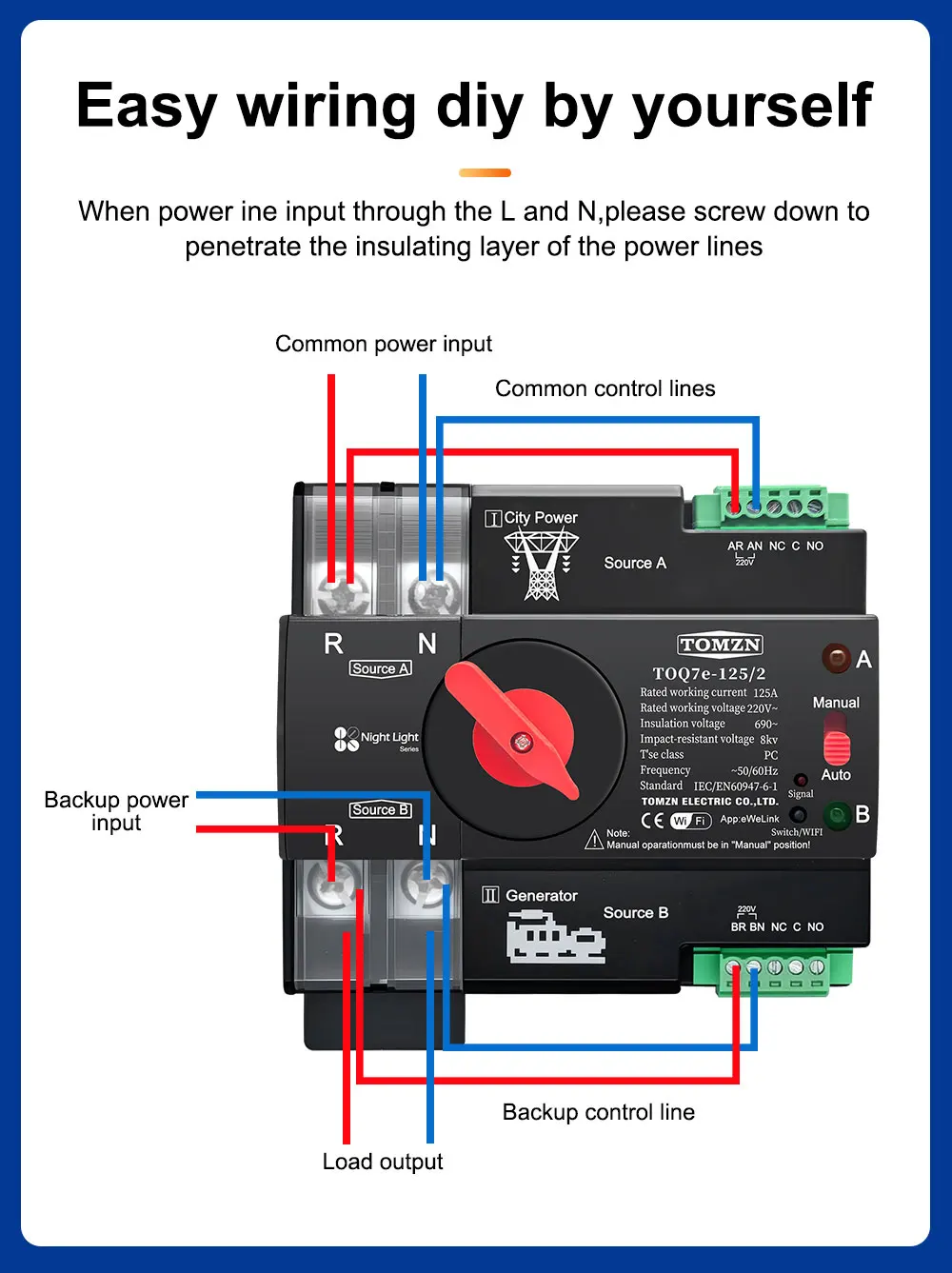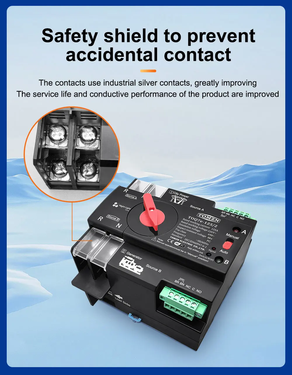 2P WIFI ATS Solo para 220-230 V CA (los usuarios en países con fuente de alimentación de 110-120 V no pueden usarlo)