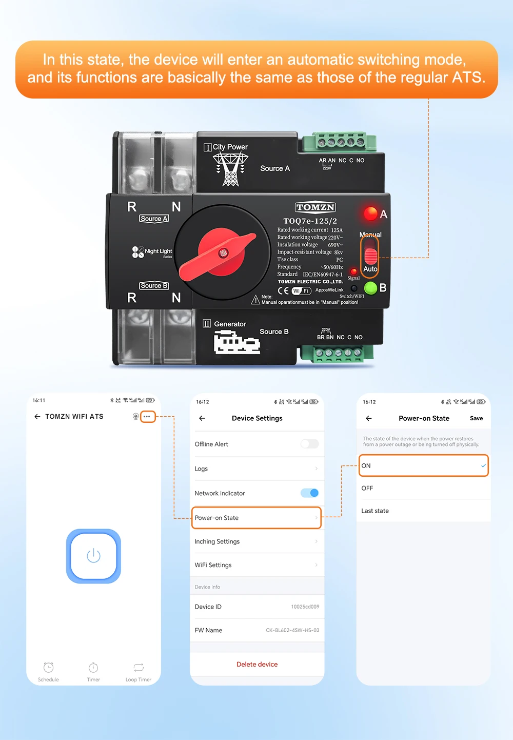 Es una auténtica maravilla al principio me mareé un poco por el afán de sobre entender todo sin leer y sin informarme bien pero ahora estoy muy satisfecho con su funcionamiento. os cuento un poco yo lo tengo conectado a un inversor Saj de 6kw sin batería( de momento) y lo puse a través del wifi conectado B y lo que me hace es que coge la solar la manda a la casa, si la solar baja, lo que necesita lo coge de la red, todo esto mientras haya solar y cuando la solar desaparece del todo debe de conmutar a la A, estoy esperando con paciencia a ver si conmuta. En este momento aún producen mis baterías 211w, estoy en Puzol,Valencia, España y son aquí las 19,48 horas de Agosto de 2025 y sigo esperando para ver si desconecta y pasa a B, os mando una foto tambien, el día está muy despejado por eso siguen produciendo las placas, el modelo del ATS es TOMZN Dual Poner Switch 2 polos wifi a 220v. la aplicación wifi es Ewelink, sigue bajando 99w, 20,16h ,44w, 20,24 h,18 w,20,34h, 0w y no conmuta.