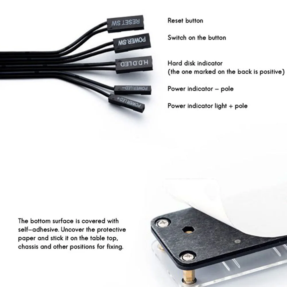 1. Este interruptor está hecho de material acrílico, conciso, exquisito y práctico. Se recomienda para usuarios domésticos, salas de ordenadores, máquinas de tablero desnudo, chasis refrigerado por agua DIY, etc. 2. Si el botón del panel del chasis está dañado, esta reparación es una muy buena opción. El cableado del interruptor se puede insertar desde la posición de la unidad óptica en el panel frontal, la ventana del ventilador en el panel trasero, la ranura de expansión en el panel trasero, etc. 3. Si la caja se coloca en un lugar difícil de alcanzar, Use este interruptor para llevarla a un lugar donde sea conveniente operar. 4. Hay muchos usos. Usa tu imaginación y dedícalo a ti que te encanta hacerlo. El interruptor tiene 1 botón de arranque + 1 botón de Reinicio + 1 indicador de encendido + 1 Indicador de disco duro tamaño: 8x4x1,6 cm la longitud del cable es de aproximadamente 60cm Material: Color acrílico: contenido del paquete negro + transparente: 1 interruptor de encendido. Solo el contenido del paquete anterior, otros productos no están incluidos. Nota: La luz y las diferentes pantallas pueden hacer que el color del artículo en la imagen sea un poco diferente del real. El error de medición permitido es +/- 1-3cm.