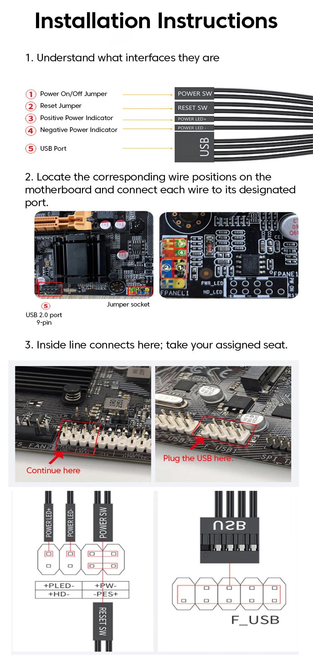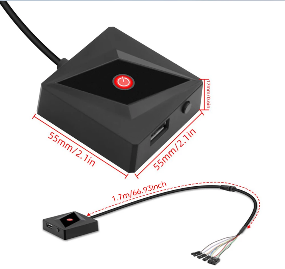 Interruptor de alimentación de PC externo, placa base de PC, arranque externo, USB 2,0, botón de encendido/apagado, Cable de extensión de 1,7 M, interruptor de inicio de reinicio