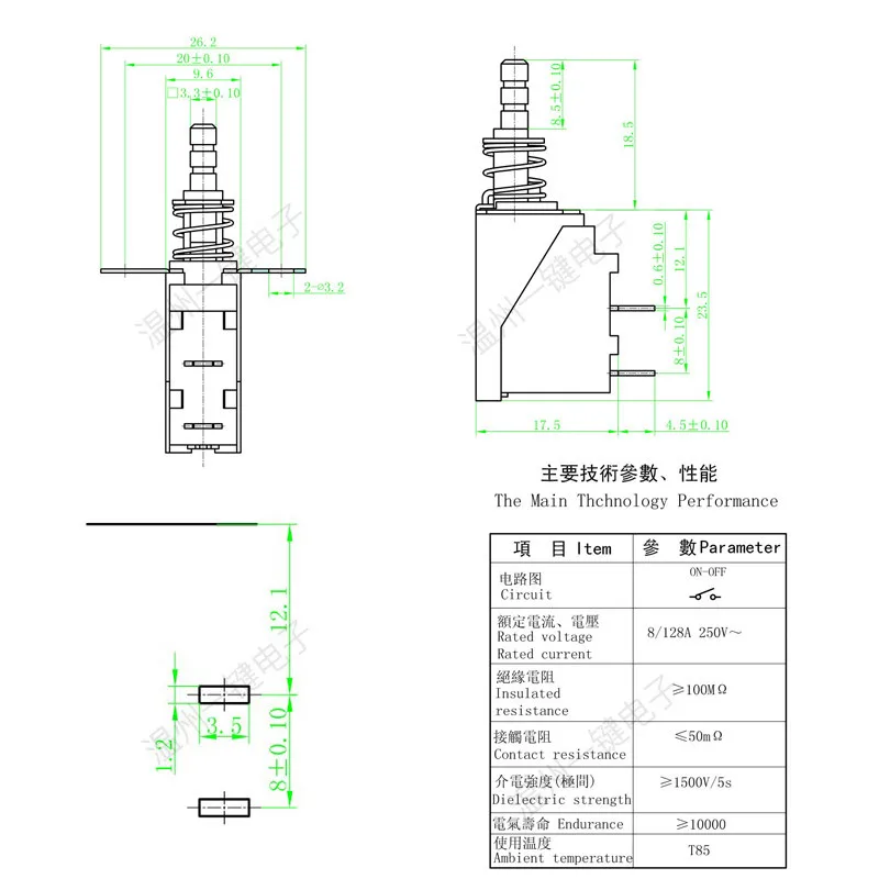 5PCS Straight Key Self-Locking switch KCD-A10 SW-2 A04 Power Switch 2Pin Outer Spring 5A For Range Hood