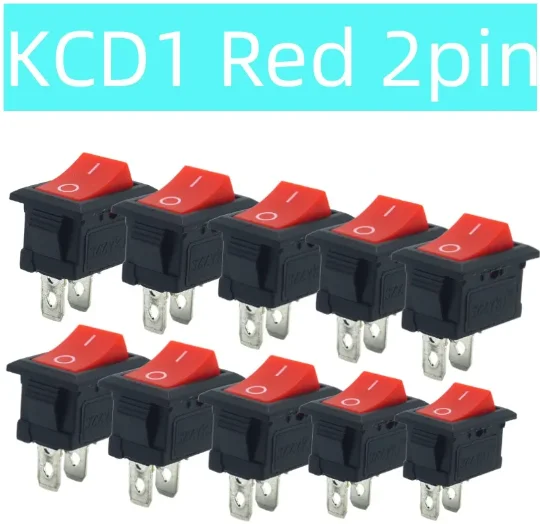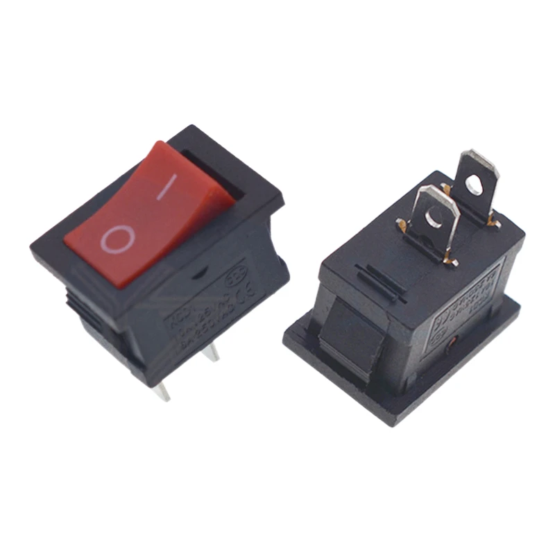 Comprar Interruptor basculante de 10 piezas, miniinterruptor rojo de 15x21 KCD1-101, 2 pines, 6a/250V, encendido y apagado, 15x21MM