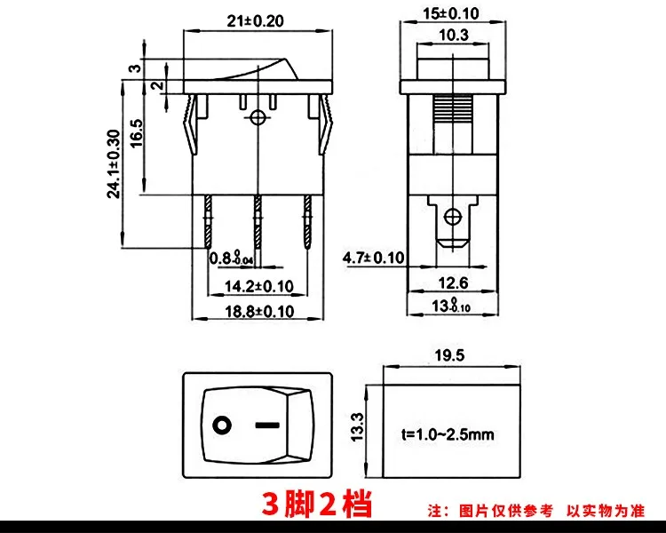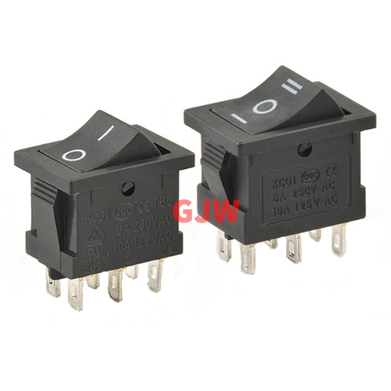 Comprar Interruptor basculante de 5 piezas AC 6A/250V 10A/125V 6 pines 21*15mm 2 posiciones 3 posiciones para barco interruptor on off KCD1 negro 21x15mm