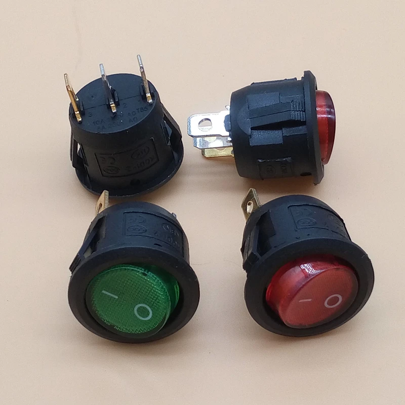 Comprar Interruptor basculante de botón de luz roja/verde, 6A, 250V, redondo, encendido/apagado, SPST, 3 pines, palanca de 23mm de diámetro, 5 uds.