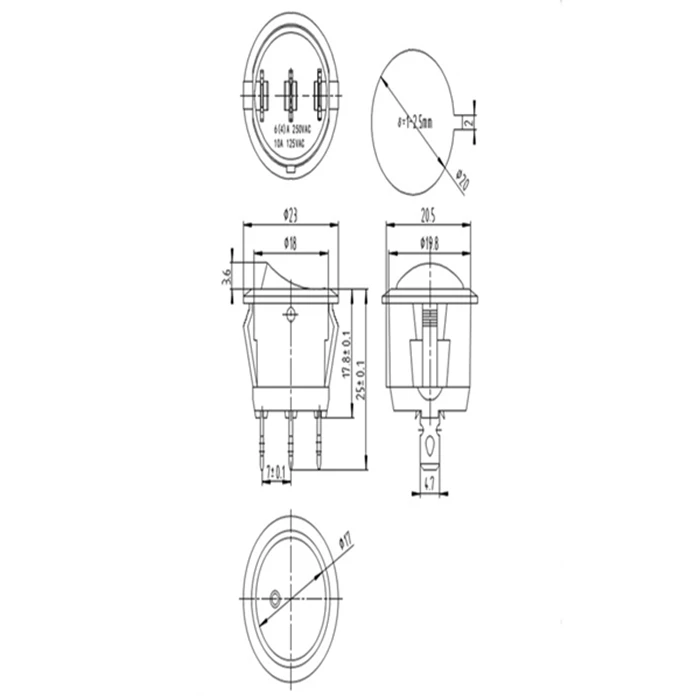 Interruptores SPST ON/OFF Rocker redondo 3 pines de palanca