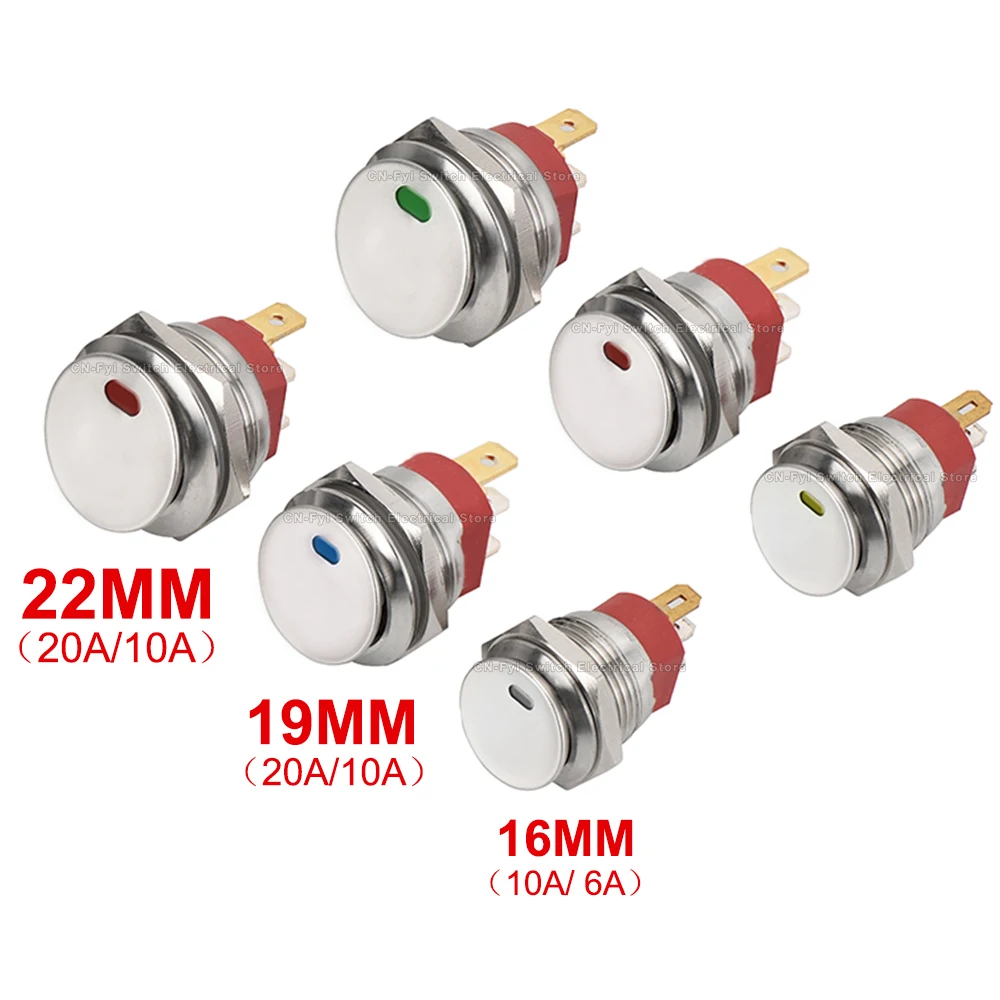 Interruptor basculante de botón de Metal de 16/19/22mm, acero inoxidable, 12V, 20A, autobloqueo, dos posiciones, interruptores de palanca para coche, encendido y apagado, 220V, 15A, 3 pines