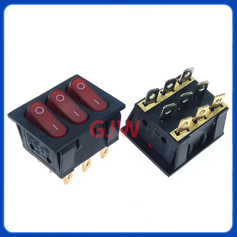 Interruptor basculante para coche y barco, piezas de encendido y apagado, 9 pines, luz verde y roja, 15, 250V, 20A, 125V, CA, KCD4, KCD2-3101N, KCD3, botón Triple, 1 KCD3-303