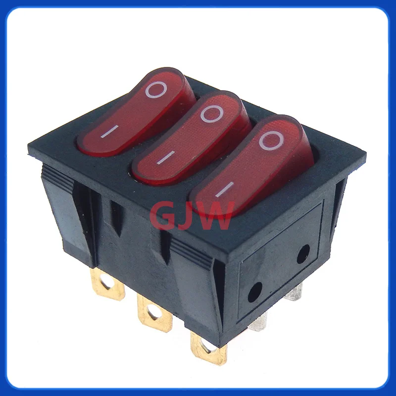 Comprar Interruptor basculante para coche y barco, piezas de encendido y apagado, 9 pines, luz verde y roja, 15, 250V, 20A, 125V, CA, KCD4, KCD2-3101N, KCD3, botón Triple, 1 KCD3-303