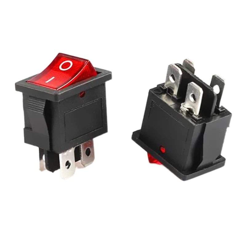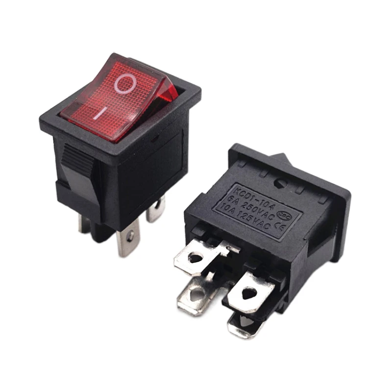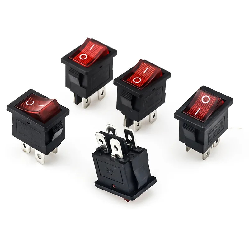 Comprar Interruptor basculante delicado KCD1 - 104 AC 250V 6A 4 pines rojo con LED encendido/apagado e/O SPST Snap en Mini barco, 10 unidades por lote
