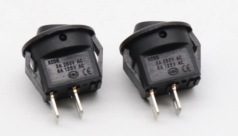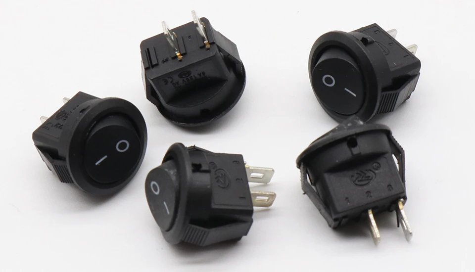 Comprar Interruptor basculante pequeño y redondo, accesorio negro de 2 pines, 2 archivos, 3A/250V, 6A/125V, 5 uds.