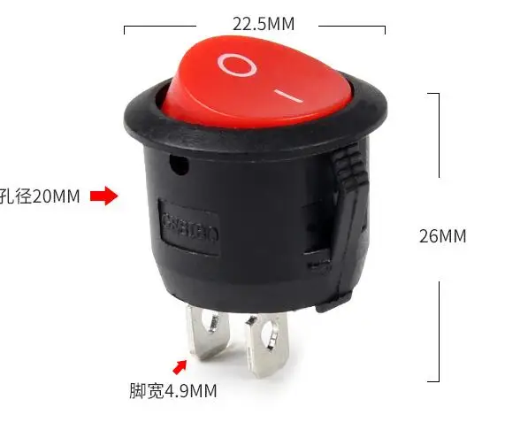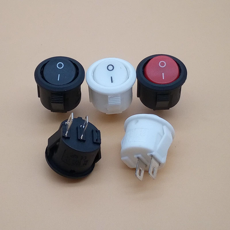 10 Uds SPST negro/rojo/blanco botón de encendido/apagado interruptor basculante redondo AC 10A/125V 6A/250V