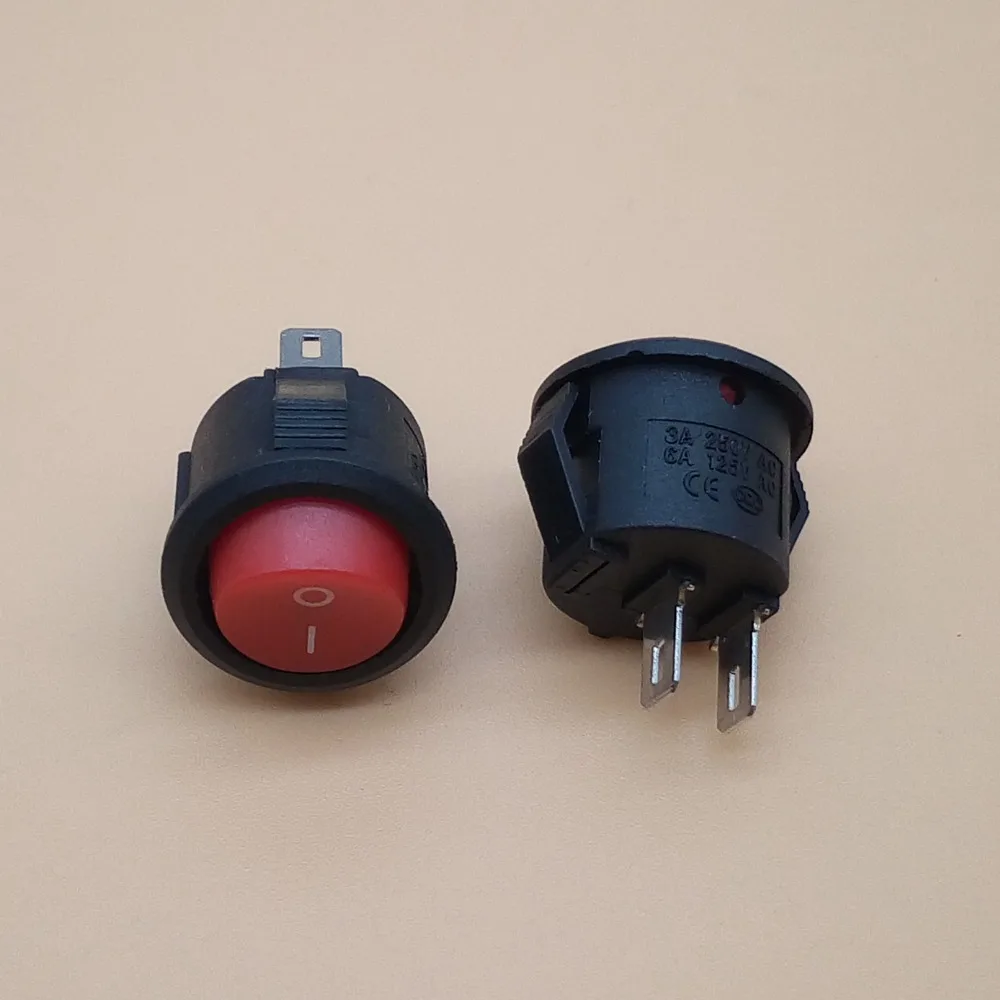 10 Uds SPST negro/rojo/blanco botón de encendido/apagado interruptor basculante redondo AC 10A/125V 6A/250V