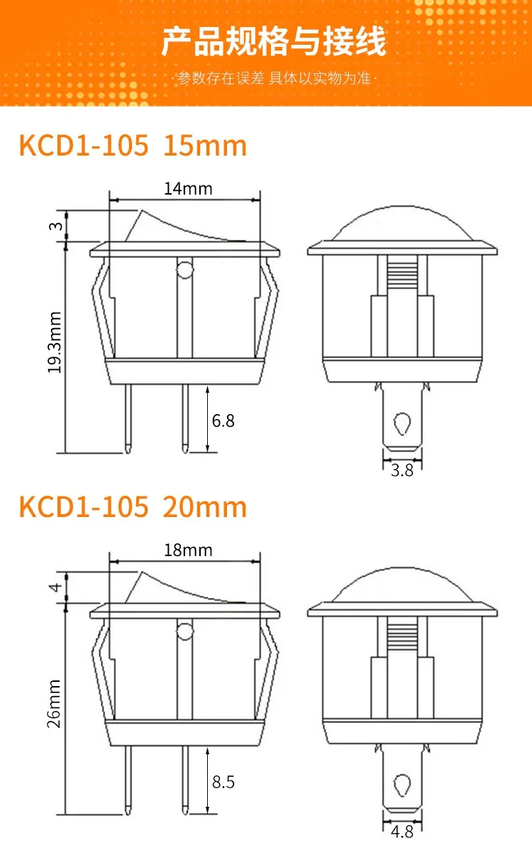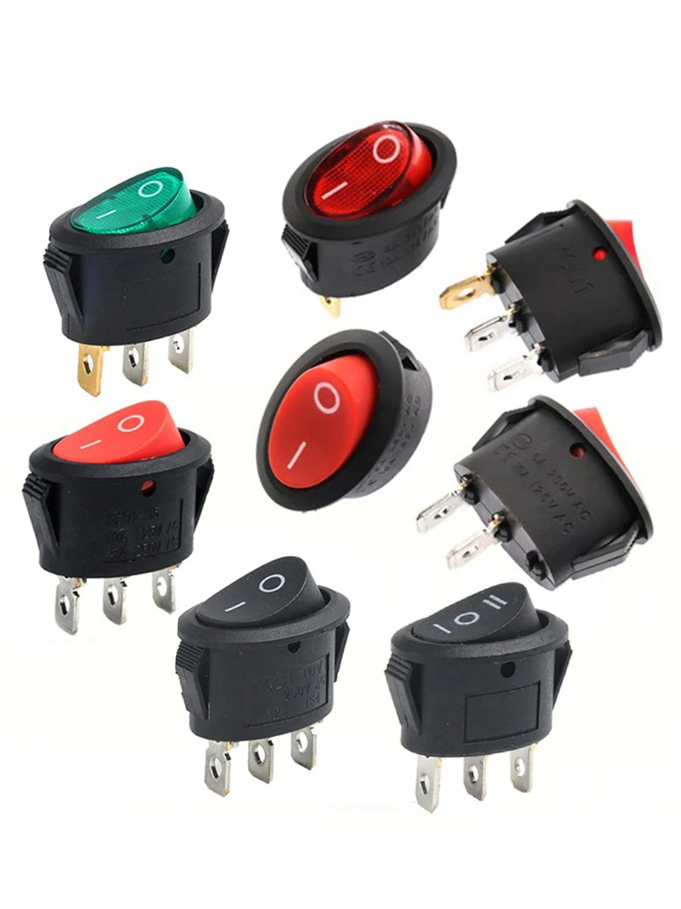 Comprar Interruptor basculante redondo de encendido/apagado para salpicadero de coche, iluminación LED, 12V, 24V/6A, 250V/10A, 125V, 2/3/4 Pines, 20MM, 2 piezas