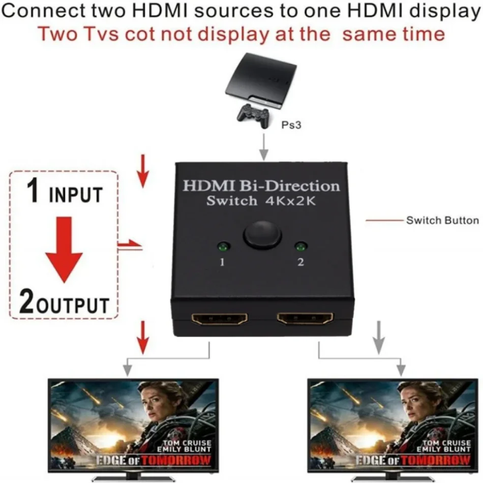 Comprar Interruptor bidireccional compatible con HDMI, adaptador divisor de 2 puertos para PS4/3 TV Box, 4K x 2K, 1x2 / 2x1