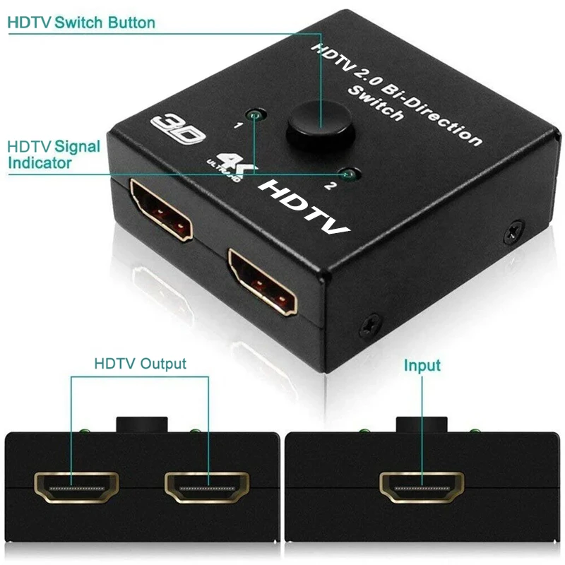 Comprar Interruptor bidireccional HDTV 2,0, 4K, 60HZ, divisor, 1x2, 2x1, adaptador Dual de 2 puertos, convertidor, compatible con Ultra HD 4K