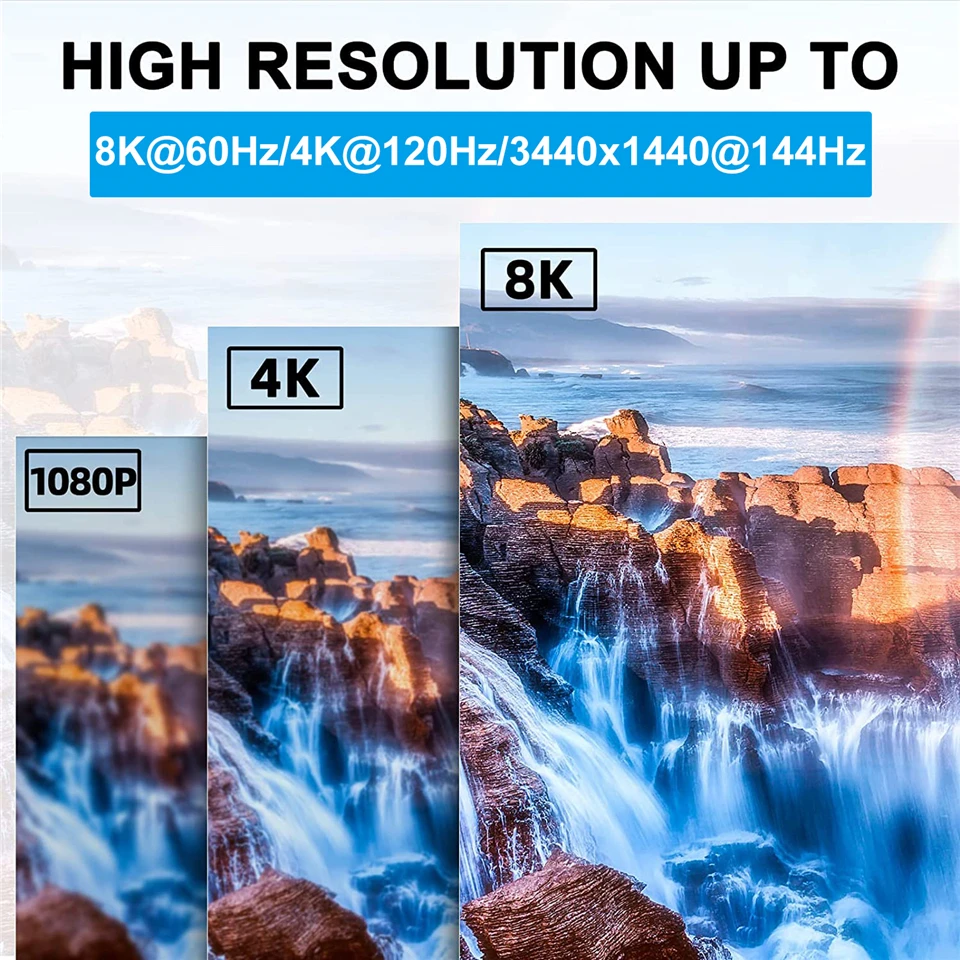 La resolución del interruptor Navceker USB C admite hasta 1080P @ 120/165Hz,2K @ 60/120/144Hz,4K @ 60/120Hz,8K @ 30/60Hz, retrocompatible.