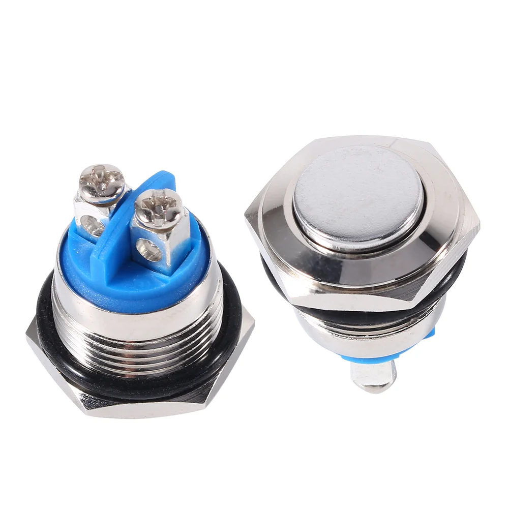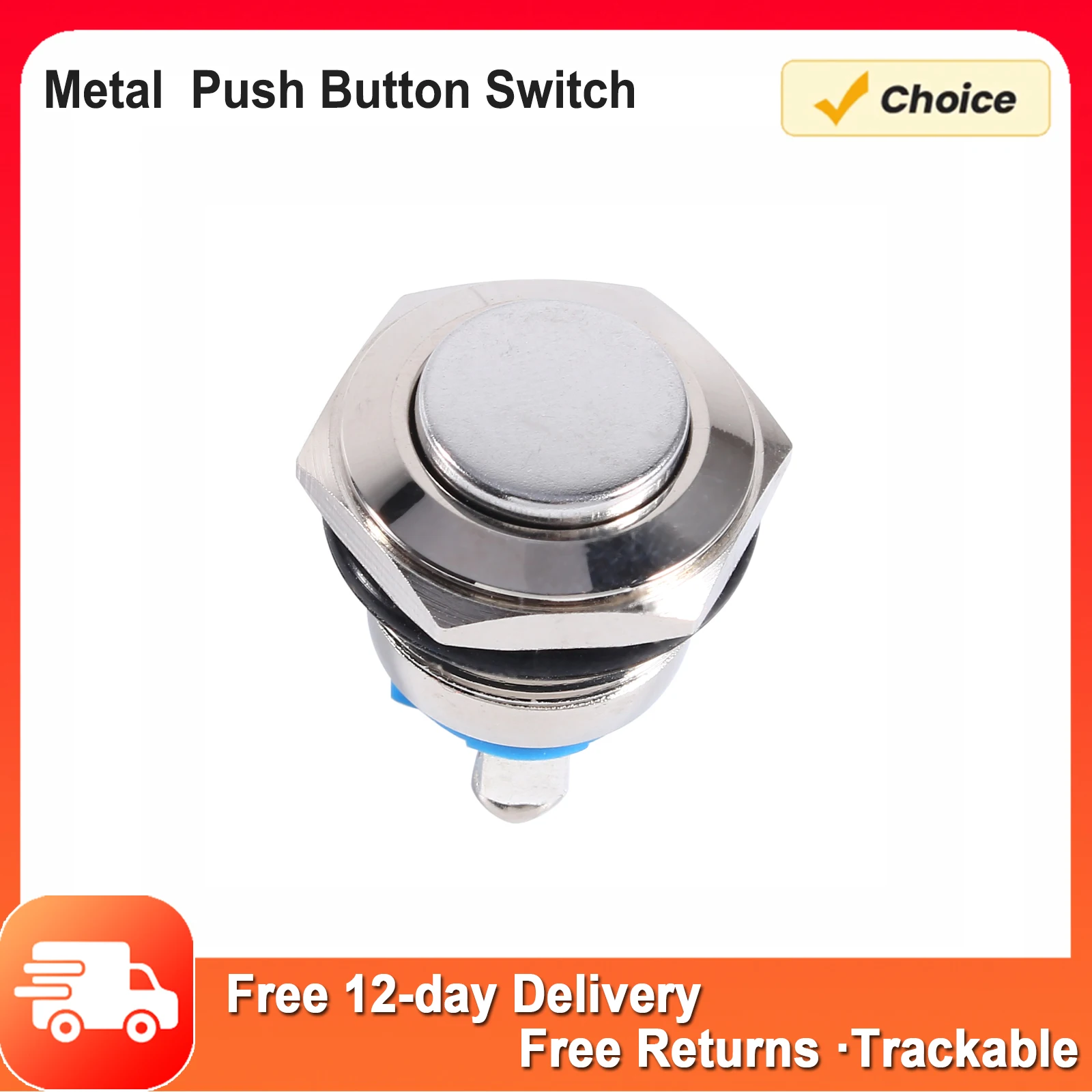 Comprar Interruptor de bocina, interruptor de botón redondo de arranque de motor, 12V, 16mm, botón pulsador de Metal momentáneo impermeable para coche, interruptor de bocina de encendido y apagado, color plateado