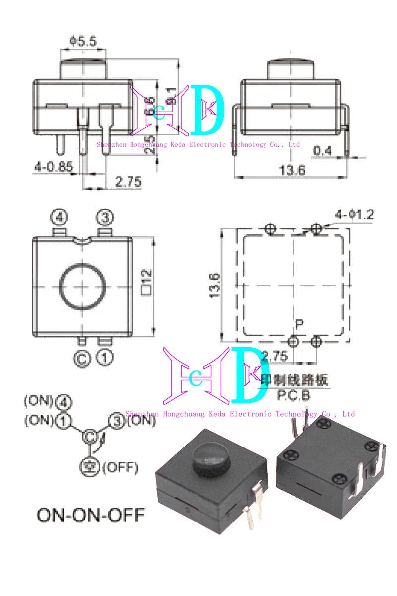 Interruptor de botón de 10 piezas, 12x12MM, linterna de luz fuerte, micro interruptor de botón, 1212-214A, autobloqueo/dos encendido y apagado uno