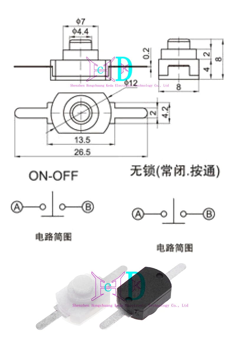 Interruptor de botón de 10 piezas, 12x8MM, linterna de luz fuerte, micro interruptor de botón de encendido, 1208-YD desbloqueado/one on one off