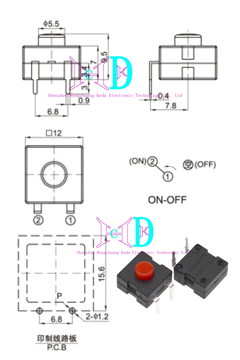 Interruptor de botón de 10 piezas, linterna de luz fuerte, microbotón, 12x12MM, 1212-112DB, autobloqueo, encendido y apagado