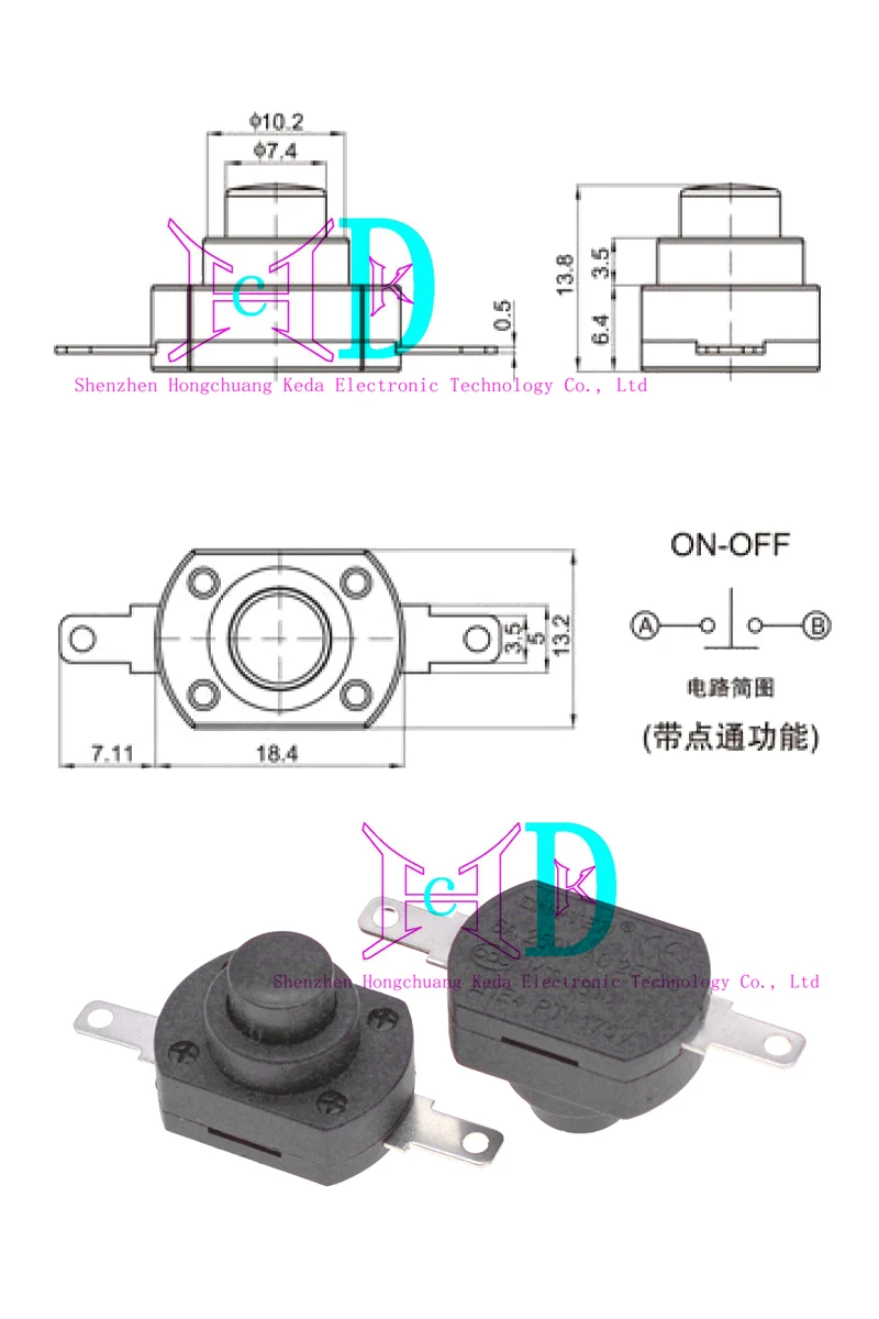 Interruptor de botón de 10 piezas, linterna de luz fuerte, microbotón 1813-MK, pie plano, autobloqueo, uno encendido y apagado, 18x13MM