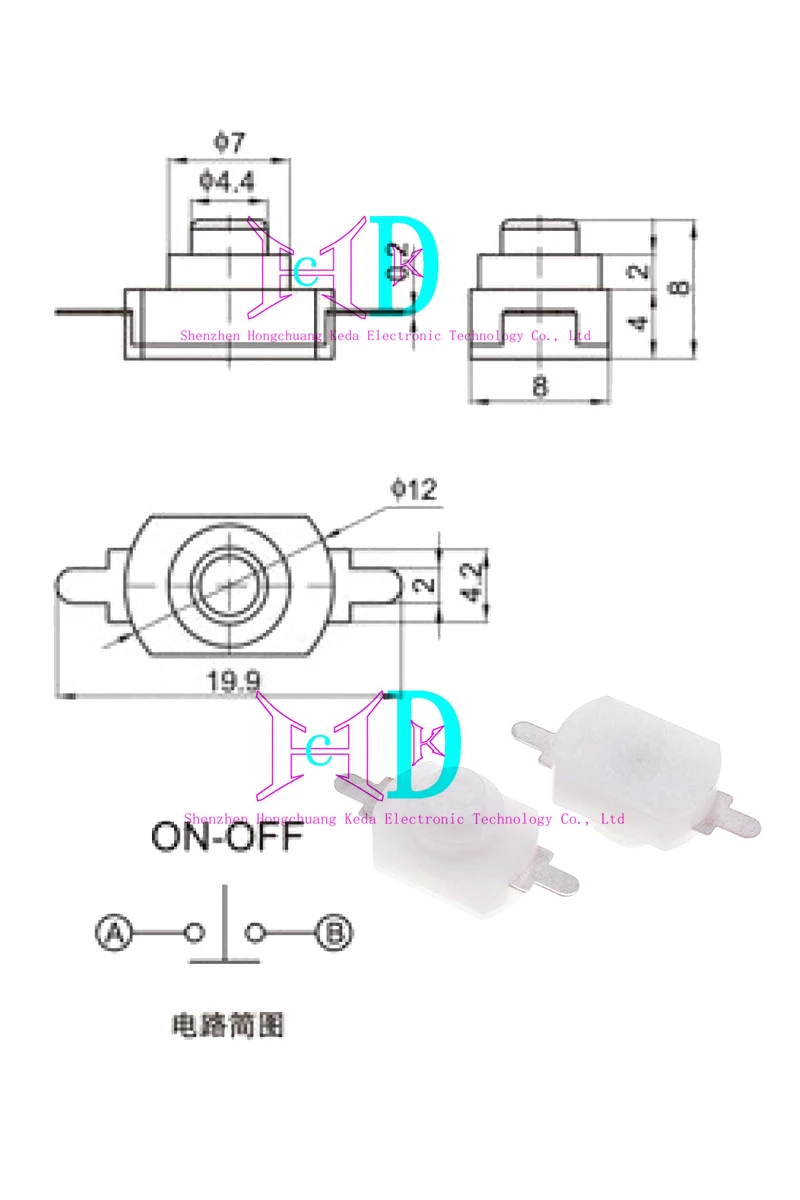 Interruptor de botón de 10 piezas, linterna de luz fuerte, microbotón de encendido, 1208-D, autobloqueo, encendido y apagado, 12x8MM