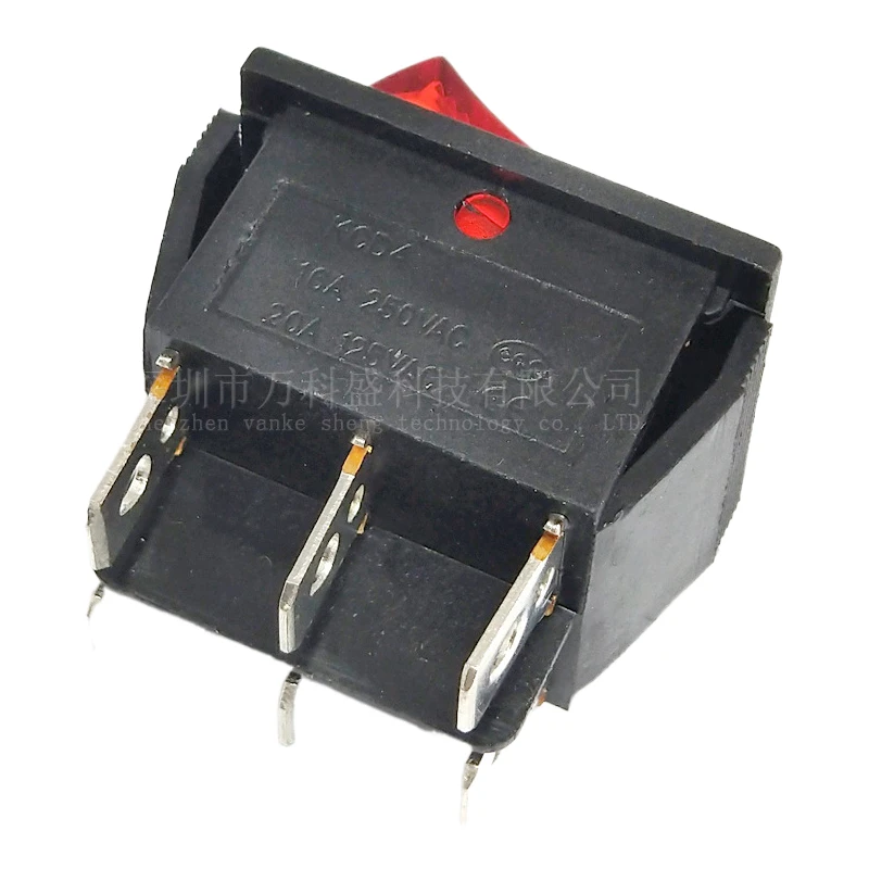 Interruptor de botón de encendido/apagado de barco, luz roja de 10 piezas, 4 pines, 250V, 15A, CA 125V, 20A, P0.5, 25x31mm, interruptores basculantes KCD4