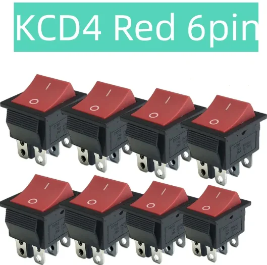 Comprar Interruptor de botón de encendido/apagado de barco, luz roja de 10 piezas, 4 pines, 250V, 15A, CA 125V, 20A, P0.5, 25x31mm, interruptores basculantes KCD4