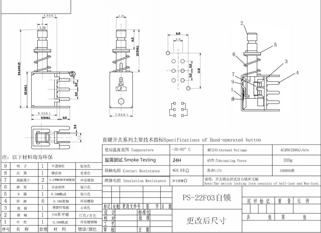 Comprar Interruptor de botón de enclavamiento PCB de ángulo recto, pulsador con tapa DPDT, doble Polo, interruptores de alimentación de llave autoblocante, 6 pines, A03, PS-22F03, 10 Uds.