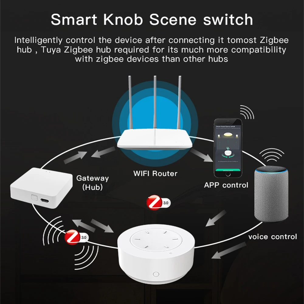 Interruptor de perilla inteligente Tuya ZigBee, botón de interruptor de escena inalámbrico, atenuador remoto, escenario de automatización alimentado por batería, aplicación Smart Life
