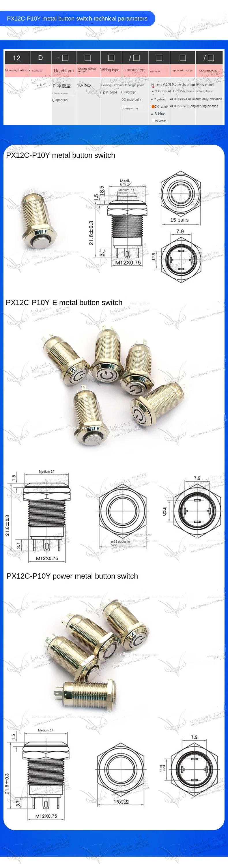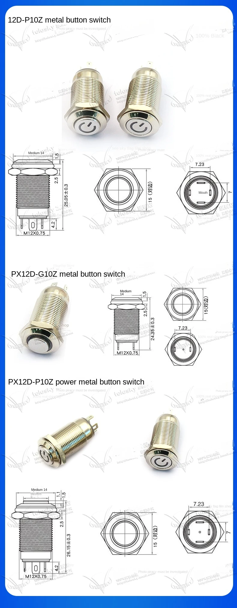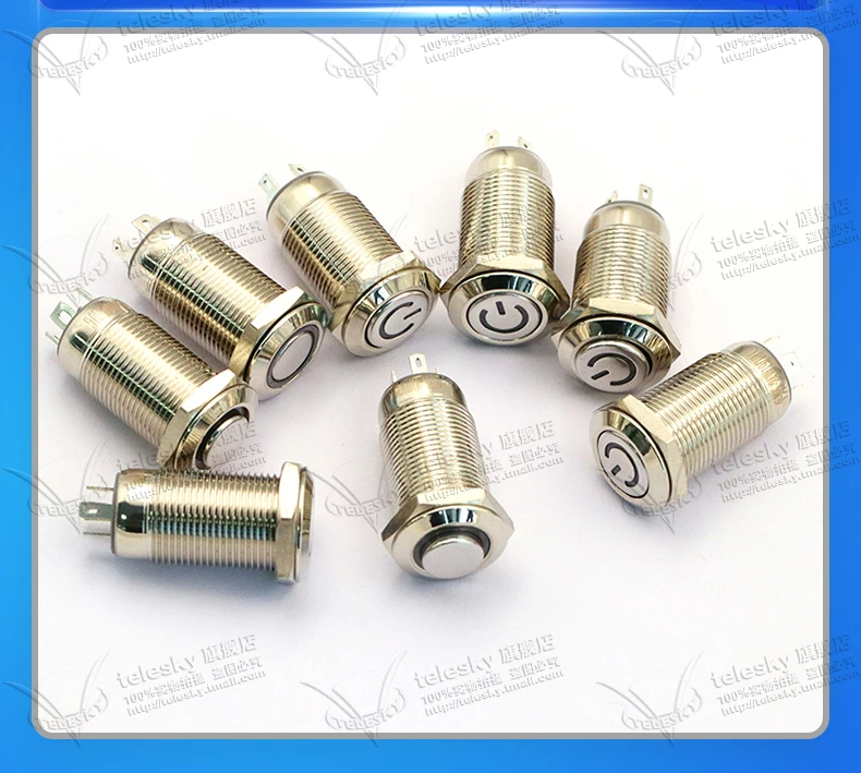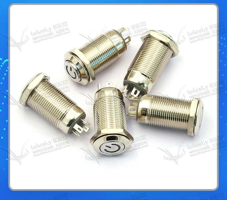 Interruptor de botón de Metal de 1 piezas, 12mm, pequeño, redondo, botón de cabeza plana alta, impermeable, autobloqueo, modificación de energía, inicio de computadora