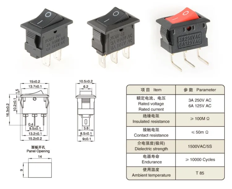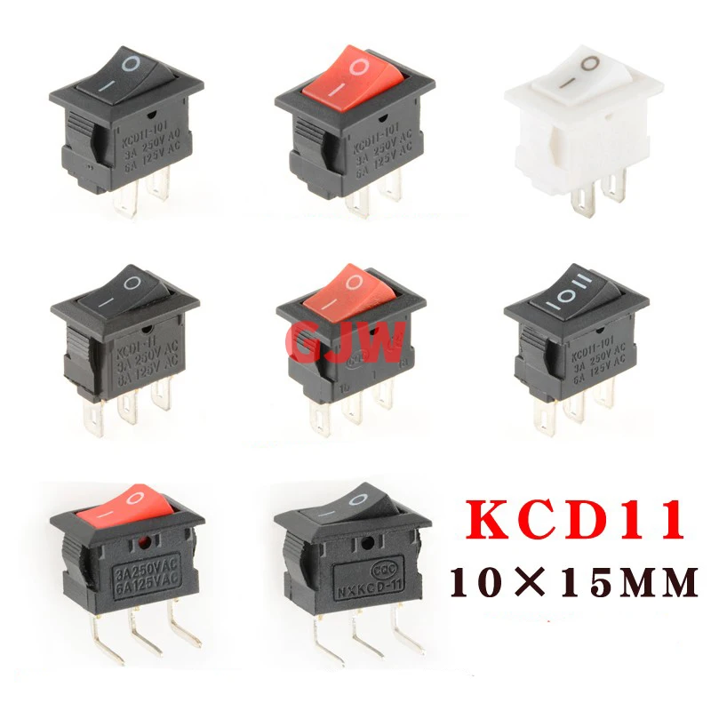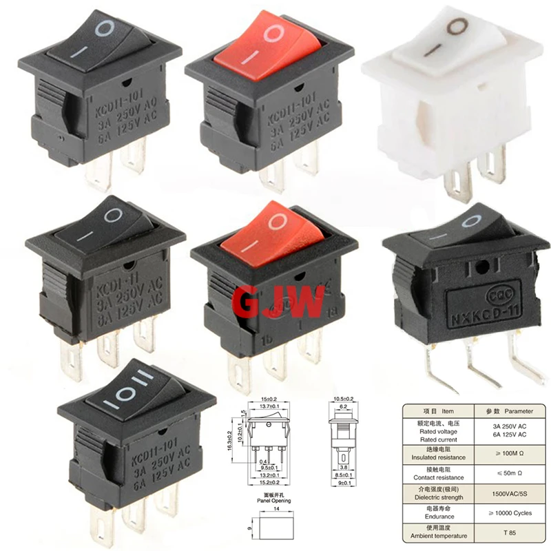 Comprar Interruptor de botón pulsador de 2 piezas, 10x15mm, 2 pines, 3A, 250V, KCD11, interruptor basculante de encendido/apagado a presión, 10MM x 15MM, negro, rojo y blanco