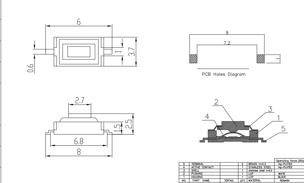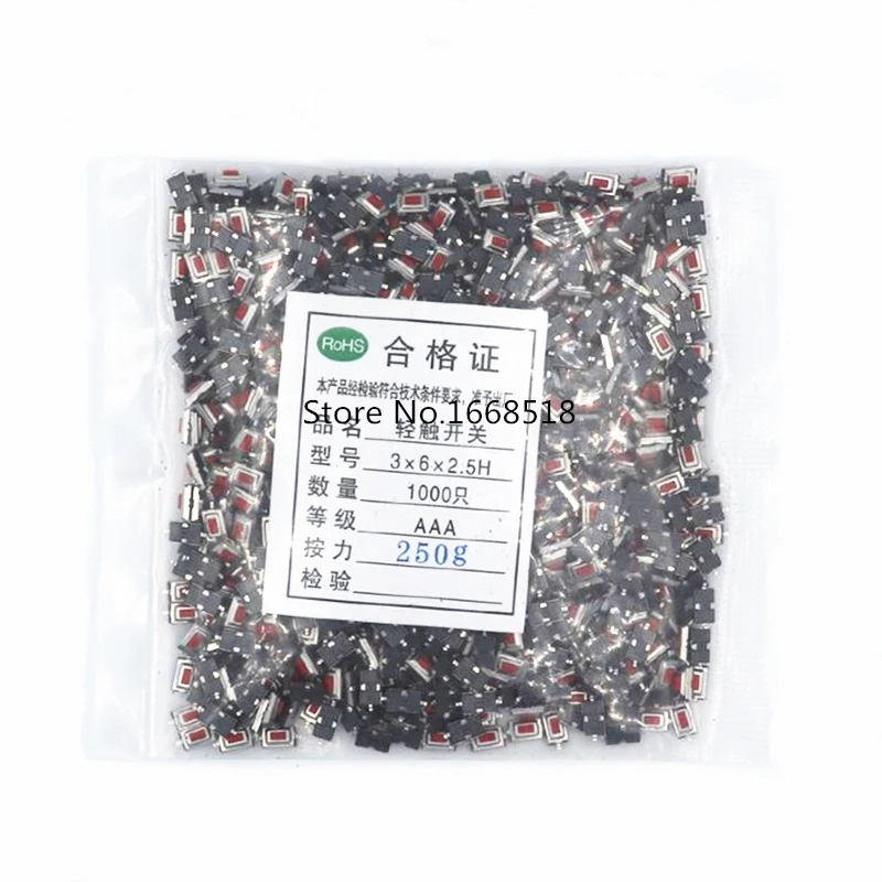Comprar Interruptor de botón rojo, 3x6x1000mm, 3x6x2,5 H, SMD, 2,5 Uds.