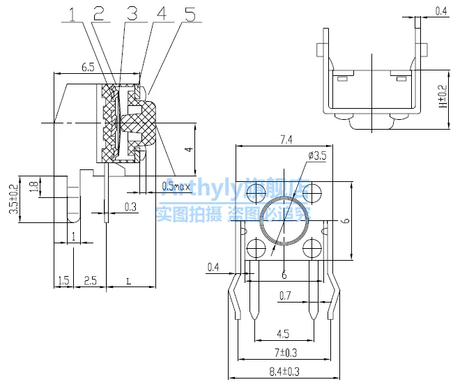 /5/6/7/8/9/10/12mm soporte Horizontal 4 pines DIP Micro interruptor