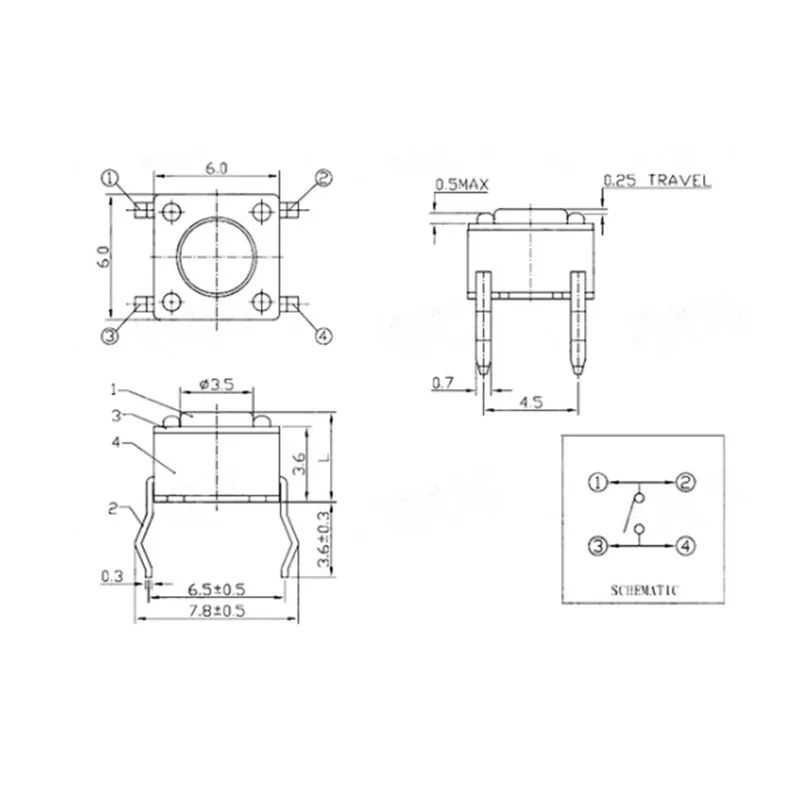 Comprar Interruptor de botón táctil de 6x6x6mm, 6x6x6mm, 4 pines DIP 200/500/1000 Uds.