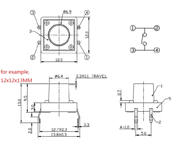 Comprar Interruptor de botón táctil dip de 4 pines, pulsador táctil de encendido de Micro tecla, 20 piezas, 12x12x14MM, 12x12x14MM, 12x12x14MM