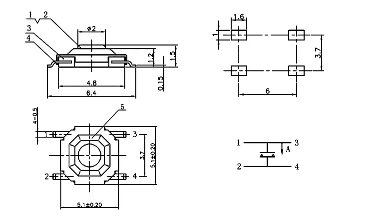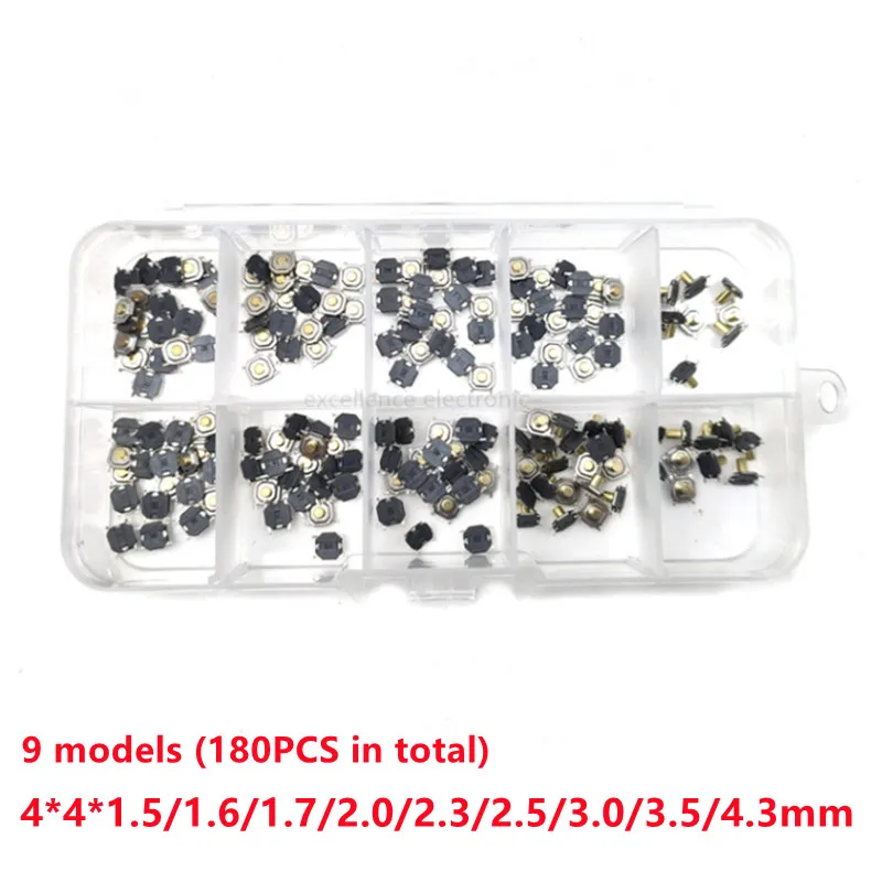 Comprar Interruptor de botón táctil de Metal, pulsador momentáneo SMT de 4 pines, 180 piezas H = 1,5/1,6/1,7/2,0/2,3/2,5/3,0/3,5/4,3mm