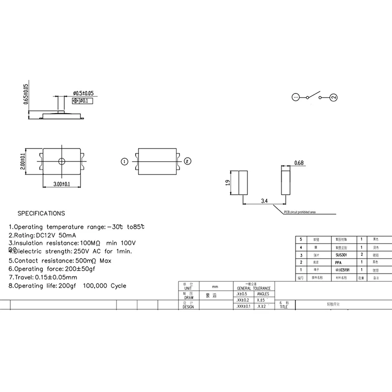 Comprar Interruptor de botón táctil, microinterruptor SMD de 20/50/100 piezas, 2x3x0,6 U, 4 pines