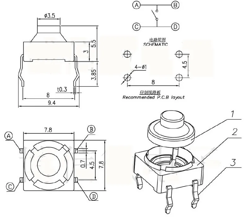 Interruptor de botón táctil de silicona, pulsador silencioso de 4 pines, 8x8x5MM, 10 piezas, 8x8x5MM