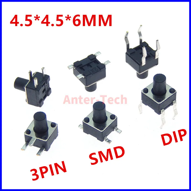 Comprar Interruptor de botón táctil SMD de 5 pines, microinterruptor de 6x6x100 MM, plano, rojo, 3,7 piezas, 6x6x3,7mm, 6,2x6,2, 6,2x6,2