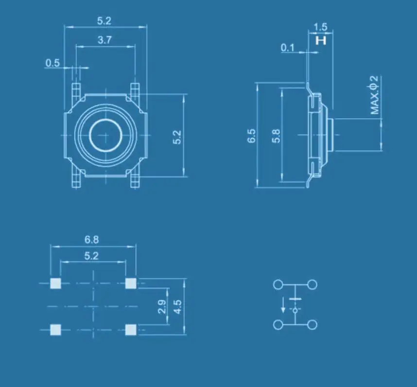 Comprar Interruptor de botón táctil SMD PCB, 4x4MM, 4x4x1,5/1,6/1,7/2/2.3/2.5/3/3.5/4.3mm, cabeza de cobre, 50 unidades