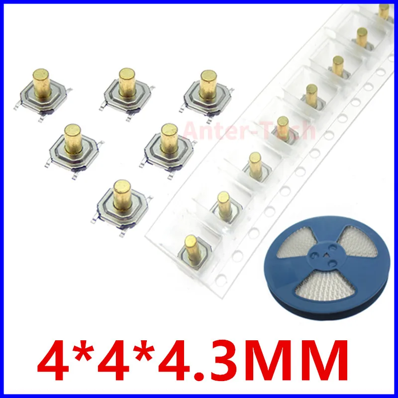 Comprar Interruptor de botón táctil SMT de Metal, Interruptor de cobre, Micro táctil, 12V, 5,2x5,2x4,3mm, 12V, 0.5A, 4 pines, 4x4,3